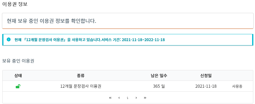 낱말 (https://natmal.com/)에 가입했고 58,800원을 주고 12개월 문장검사 이용권을 구매했다.